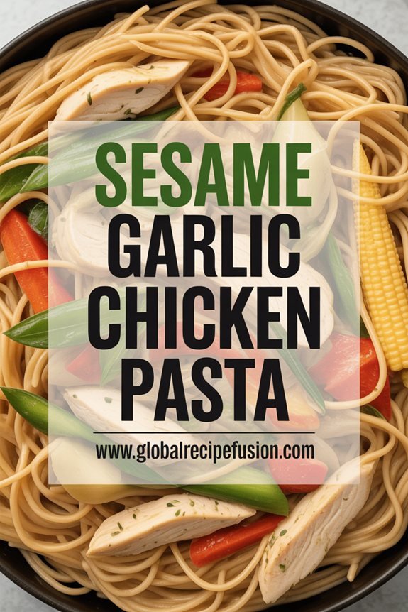 This Sesame Garlic Chicken Pasta combines Asian-inspired flavors with the simplicity of pasta for a satisfying fusion dish. The recipe balances savory soy sauce with aromatic garlic and nutty sesame elements, while incorporating protein and a variety of vegetables for a complete meal.