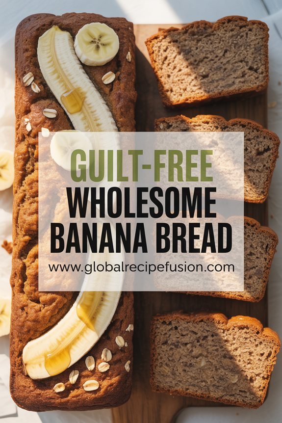 While traditional banana bread recipes often leave you feeling guilty about indulging, this wholesome version will transform your baking experience. You’ll love how it incorporates nutritious ingredients like rolled oats, wheat germ, and egg whites instead of relying on excessive sugar and butter.