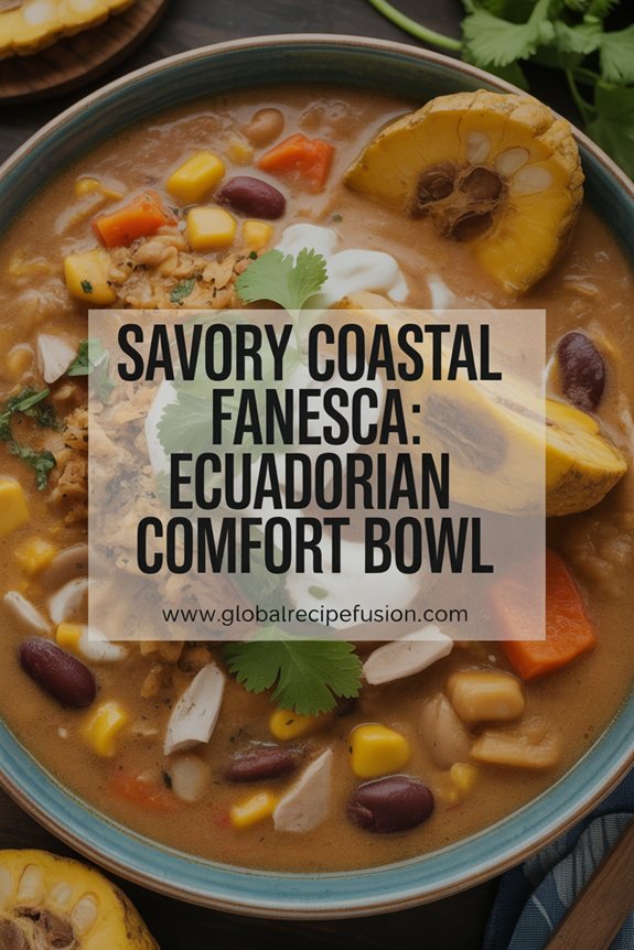 Savory Coastal Fanesca brings together an extraordinary combination of grains, legumes, vegetables, and salt cod in a rich, creamy soup that holds deep cultural significance in Ecuadorian cuisine. The diverse ingredients create layers of texture and flavor, representing the bounty of the harvest and traditional coastal influences.
