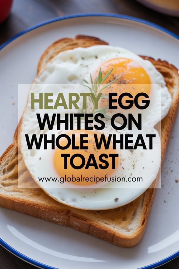 Preparing egg whites on whole wheat toast is a simple yet nutritious way to start your day. The cooking process involves gently boiling eggs until fully cooked, then carefully removing the yolks to isolate the protein-rich whites. This method guarantees perfectly cooked egg whites that pair wonderfully with the nutty flavor of whole wheat toast. For those preferring plant-based alternatives, consider using protein kitchen appliances designed specifically for preparing egg substitutes.