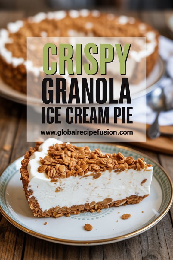 You’ll appreciate how the buttery, crunchy granola crust contrasts beautifully with the creamy vanilla ice cream, creating a texture symphony in every bite. It’s refreshingly cool yet satisfyingly substantial.