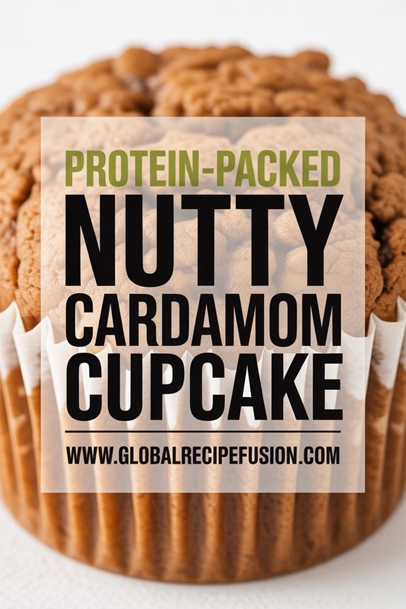 The warming spice trio of cardamom, cinnamon, and nutmeg creates a complex flavor profile that’s comforting and sophisticated. You’ll adore how the stiffly beaten egg whites give these cupcakes their light, airy texture. Perfect for meal prep—they’ll satisfy cravings while keeping you revitalized all afternoon.