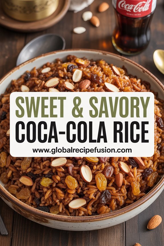 When selecting ingredients for this recipe, choose regular Coca-Cola rather than diet or zero variants to guarantee proper caramelization and sweetness. The long-grain rice provides the best texture, remaining separate and fluffy after cooking with the soda. For variations, you might consider golden raisins for a milder flavor or pine nuts as an alternative to almonds, though the original combination offers the perfect balance of textures and flavors.