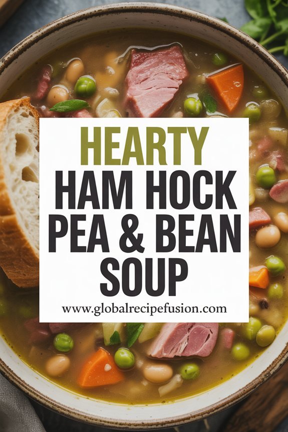 This old-fashioned favorite delivers rich, smoky flavors that develop during hours of gentle cooking—no rushed meals here! You’ll appreciate its budget-friendly ingredients and impressive versatility; make it with split peas or navy beans depending on what’s in your pantry.